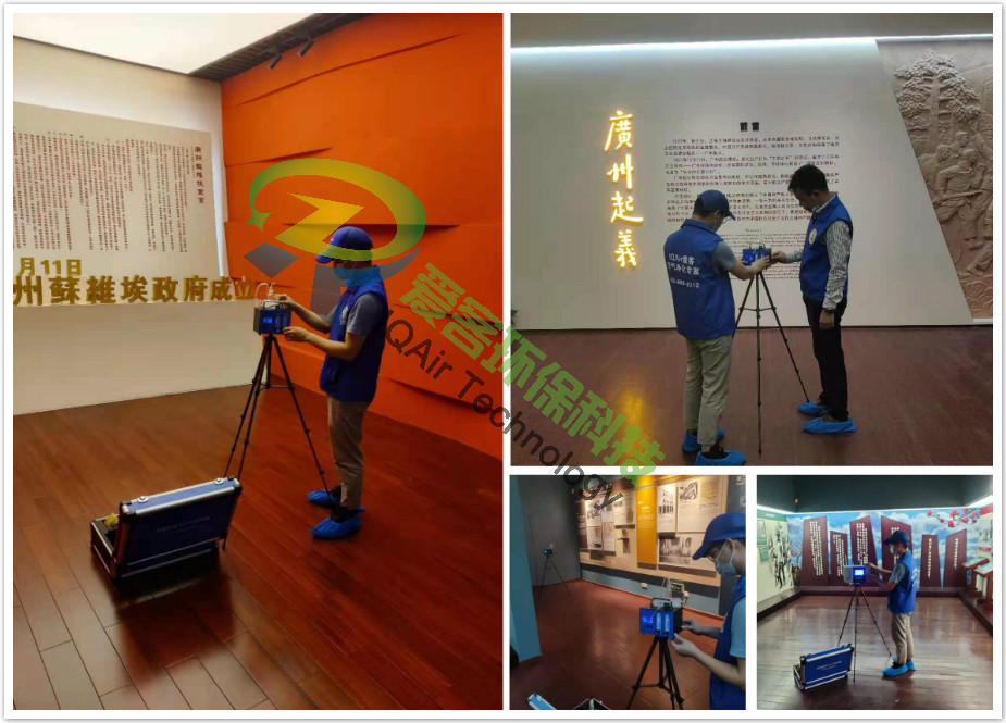 愛客工程師們對紀念館展區(qū)進行室內(nèi)空氣取樣檢測