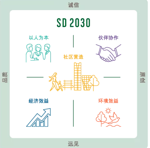 企業(yè)可持續(xù)發(fā)展五大策略支柱,分別是社區(qū)營造、以人為本、伙伴協(xié)作、環(huán)境效益和經(jīng)濟(jì)效益。這五點(diǎn),其實(shí)與LEED認(rèn)證的綠色理念也極為契合。